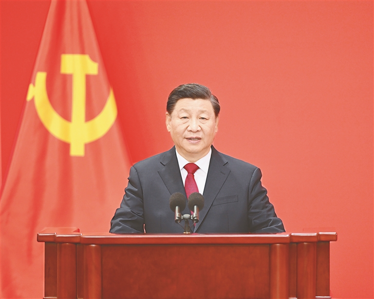 习近平指出,经过全党全国各族人民共同努力,我们如期全面建成小康社会、实现了第一个百年奋斗目标。现在,我们正意气风发迈上全面建设社会主义现代化国家新征程,向第二个百年奋斗目标进军,以中国式现代化全面推进中华民族伟大复兴。