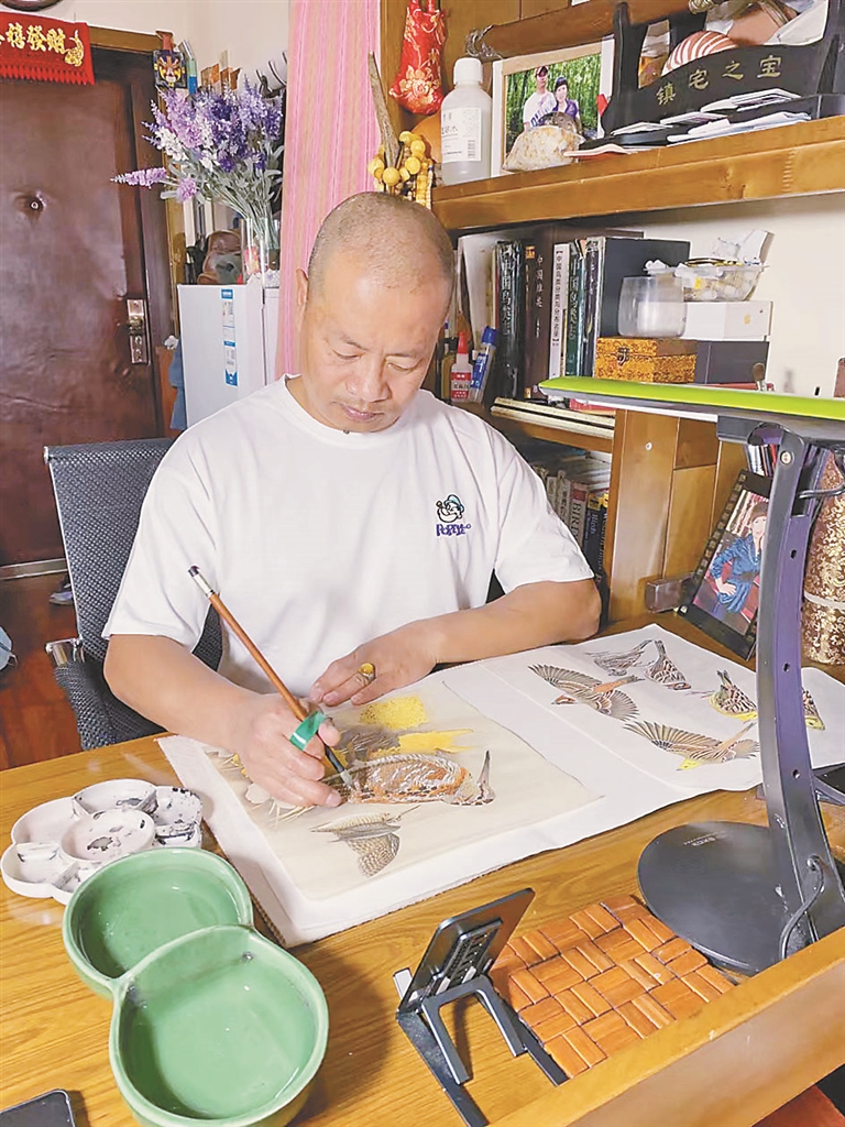 从小爱画鸟 上班当了钳工