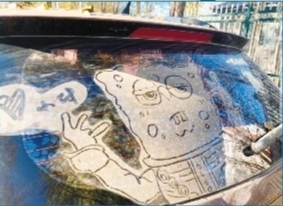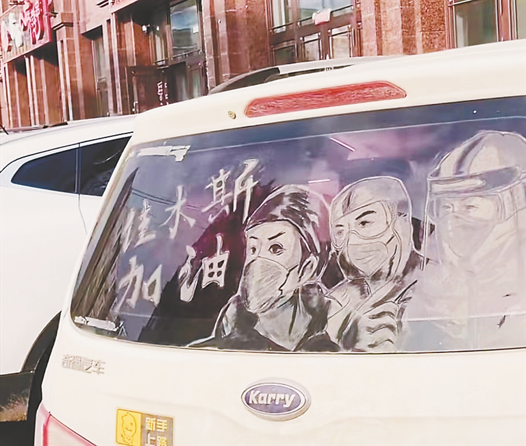 95后佳木斯小伙在积灰车窗上画画走红 全网点击量上千万