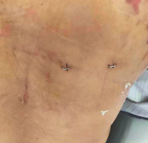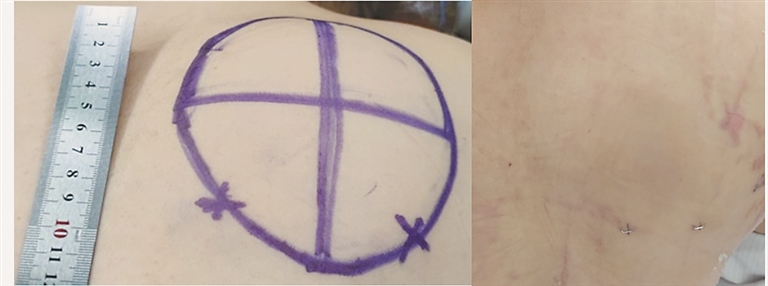 “通过高清摄像头,可将肿瘤在屏幕上放大2.5倍,能清晰地分辨出脂肪瘤组织和周围正常组织,并精准切除肿瘤,避免过多剥离损伤周围组织,减少术后并发症。”随后,谷文光在孙女士背部脂肪瘤边缘切了2个0.6厘米长的皮肤切口,经过一个小时,仅通过2个微小切口,将脂肪瘤彻底切除。