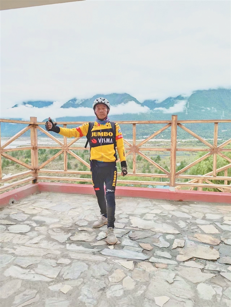 “我从哈尔滨来的!我今年74岁了!”视频里,一位皮肤黝黑,身穿骑行服,推着自行车的大爷,中气十足地回答拍摄者的问题。近日,这则黑龙江大爷骑车入藏的热搜引起热议,古稀之年挑战自我,让很多网友都感慨自愧不如。这位大爷就是王兰生,今年74岁的他,用时61天骑行6000多公里,从哈尔滨阿城出发,到达了他的梦想之地拉萨。一路上,王兰生在山顶放声歌唱,和藏族小女孩聊天,对每一位佩服他的驴友表示感谢,第二次入藏的梦想实现了。近日,已经回到家的王兰生接受了本报的采访,讲述了他和他的骑行梦。