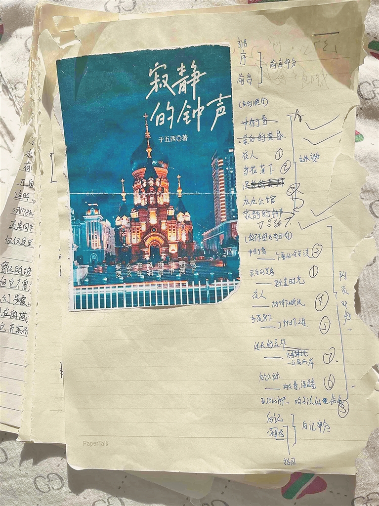 开始对哈尔滨的本土文化和各类建筑感兴趣后,于恩钧多次走访哈尔滨规划院、研究院,或是档案馆、个人博物馆等地,系统性地研究哈尔滨的历史。接着,他开始实地采风,大至人人皆知的中央大街,小至街道里的一个小胡同。脱落的墙皮、碎了一地的玻璃、潮湿的木香、漏雨的天花板……都是他创作的灵感。《寂静的钟声》就在这样的氛围里发表了。