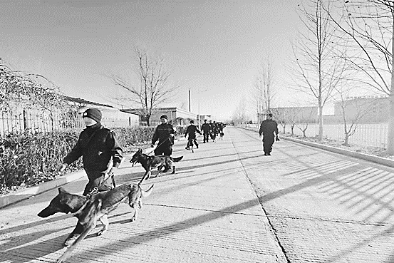 远处,外出拉练的警犬们也回来了,身上结实的线条在夕阳的映照下愈发抢眼。通过拉练,可以增强警犬的体能储备,锻炼警犬适应多环境、全地形的工作能力,使警犬始终保持良好的备战状态。