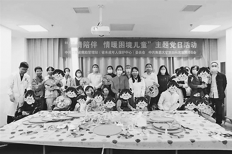 南昌大学第四附属医院于2006年被民政部确定为脑瘫患儿治疗定点协作医院。11月17日,江西省救助管理站(江西省未成年人保护中心)联合该院开展“亲情陪伴 情暖困境儿童”主题活动。