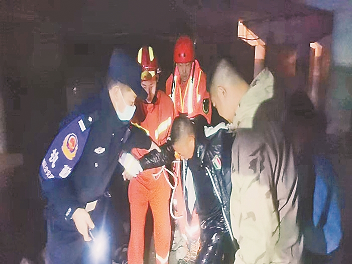 民警到达现场后发现,一名青年男子不慎失足坠落到桥下,由于落水区域附近有热网管道经过,河水没有结冰,男子被困水中浑身颤抖,言语不清,疑似出现失温状况。民警立即疏散围观人群,设置警戒区域,同时大声询问被困男子身体状况,提醒男子保持清醒,指导他采取双臂环抱姿态保持体温。男子情绪趋于稳定,并按照民警的指令向桥面施救人员转身移动。