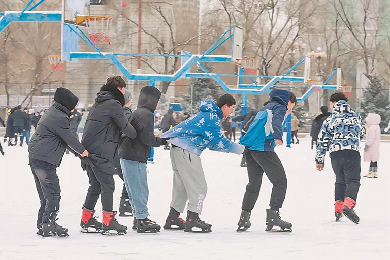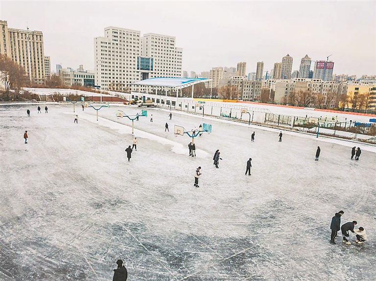 近日,哈尔滨理工大学的学生们在冰场上驰骋,共享冰情雪趣! 图片由哈尔滨理工大学提供