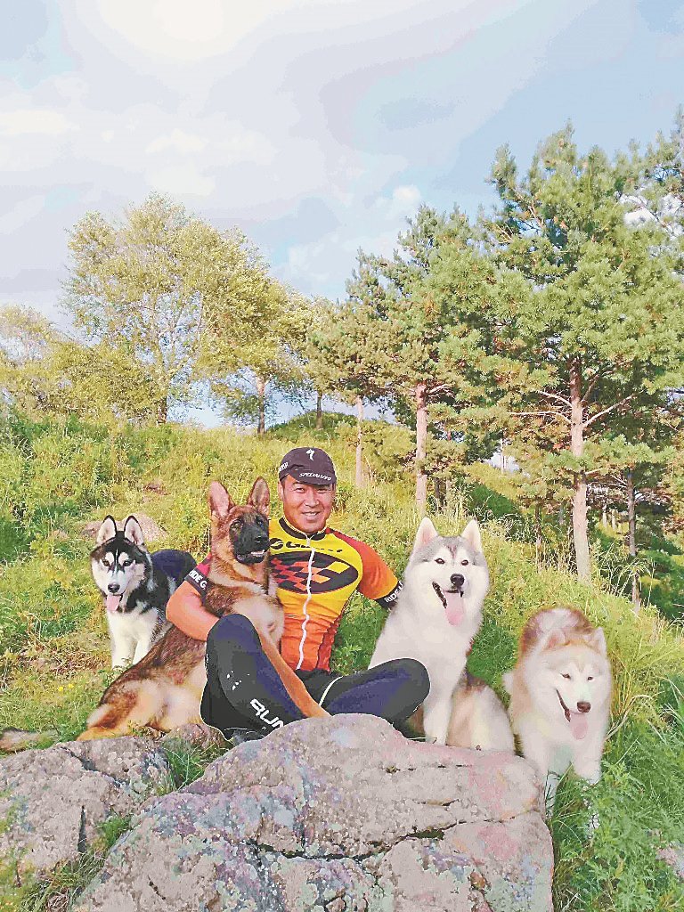或许是源于运动员的那股子执着劲儿,养雪橇犬,芦万涛是认真的。他又从国外引进了四条纯种哈士奇,为了不扰民,也为了让“毛孩子们”有个更适宜的生存环境,2013年他举家搬到了玉泉镇,并拿了执照,在山脚下建了全国第一个狗拉雪橇训练场。芦万涛坦言,他并没有什么特殊目的,只是想让训练更专业也更合规。如今,训练场里生活着多年来繁育的16只哈士奇,还有一只常在山林里打头阵“探路”的德牧。