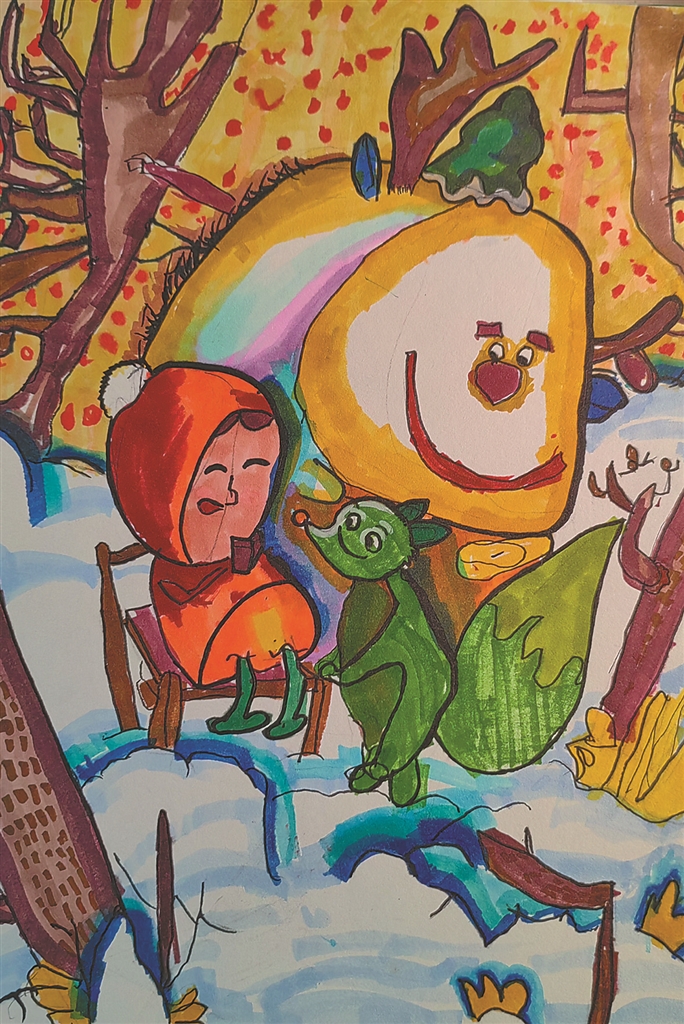 冬天,到处一片雪白,我和特别的小伙伴们,在铺满雪毯的大地上尽情玩耍,然后坐在椅子上读书。