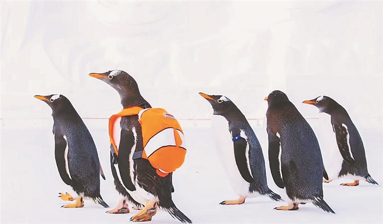 此外,在试开园现场,一群小企鹅身背橙白相间小书包,游走在太阳岛雪博会的冰雪美景中,被眼前壮观的雪雕景观所吸引。可爱的“淘学企鹅”的到来,也为本届太阳岛雪博会带来一丝灵动的趣味。