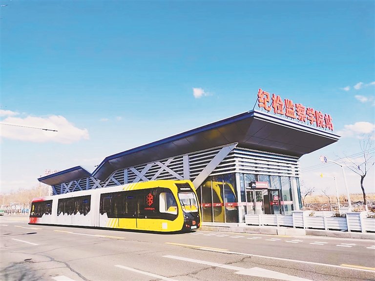 生活报讯 (韩冰 见习记者王艳 记者陈莹) 初冬,在哈尔滨松北新区的世茂大道上,一辆智轨快车驶过,鲜艳的车体以及超长的车身格外引人注目。这是一款低成本、零排放的新型交通工具,它运行在一条“看不见的轨道”上,设计感十足,富有冰城特色又造型各异的智轨站点,更是一道亮丽的风景线。