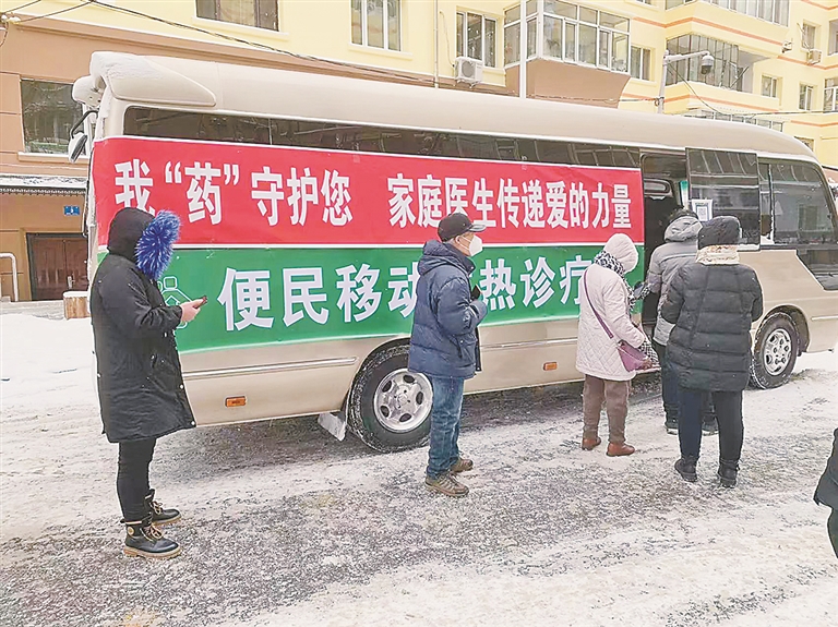 23日10时许,贴有“便民移动发热诊疗车”的车辆进入南岗区文化街道文林社区、花园街道木介小区,车辆内配备了专业医务人员和常用药品,发热居民自觉排队,医务人员现场进行问诊、配药,并给予健康指导,既避免了发热患者来回奔波,长时间候诊就诊,还能降低交叉感染的风险。
