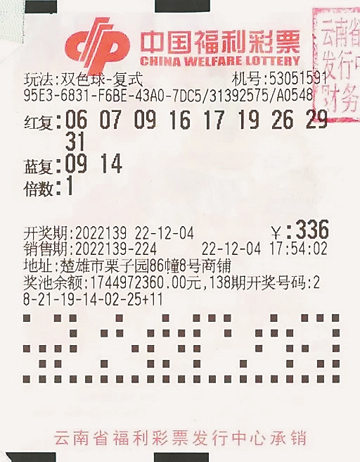 4日晚,福彩双色球第2022139期开奖,全国共中出一等奖12注,单注奖金700万余元,9注为一等奖特别奖。出自云南楚雄州楚雄市栗子园86幢8号商铺第53051591号销售网点的一张9+2复式票中得一注一等奖特别奖,票面总奖金922万余元(含派奖)。7日,大奖得主韩先生(化姓)在朋友的陪同下,来到云南省福彩中心领走了属于他的幸运大奖。