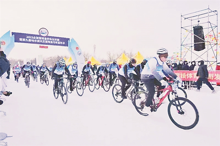 生活报讯 (记者梁晨) 24日,由中国自行车运动协会、黑龙江省体育局和哈尔滨市体育局共同主办的2022全国雪地自行车公开赛在哈尔滨太阳岛雪博会鸣枪开赛。该赛事是第九届全国大众冰雪季系列活动之一,已连续两届在太阳岛雪博会举办。