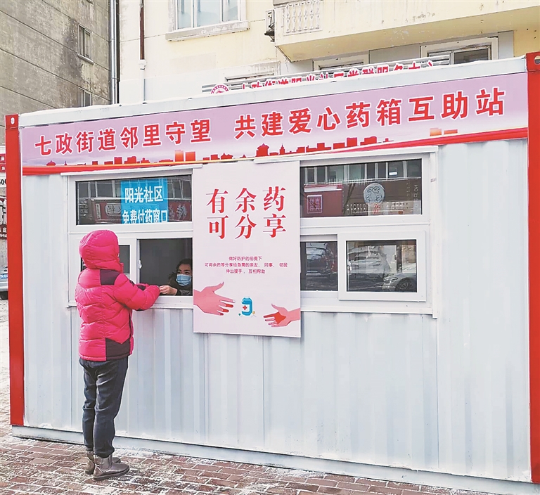 生活报讯 (记者于海霞) 为最大程度缓解辖区居民购药难题,12月24日,南岗区七政街道阳光社区将位于清滨路1-33号阳光社区门前的“核酸检测小屋”改造成了“爱心药箱互助站”,社区自筹资金购置了一些防疫药品,向社区居民免费发放,还在互助站设置了“夜间取药”处,为夜里急需药品的居民提供免费自助服务。