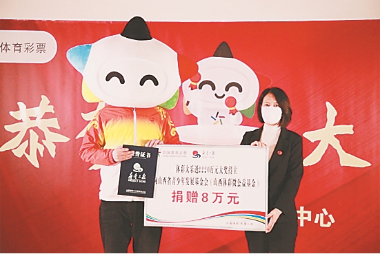 关于奖金的使用,梁先生表示会拿出一部分给父母,再存一部分当作孩子将来的教育经费,其余的暂时还没有想好。梁先生在颁奖现场,还向山西省青少年发展基金会捐赠了8万元用于社会公益事业。梁先生说:“这次中奖实在是幸运,我在中奖的时候就想着要为公益事业再多做点贡献,我觉得8这个数字很吉利,希望能从奖金中拿出一部分帮助更多需要帮助的人,让他们都能像我一样收获快乐!”