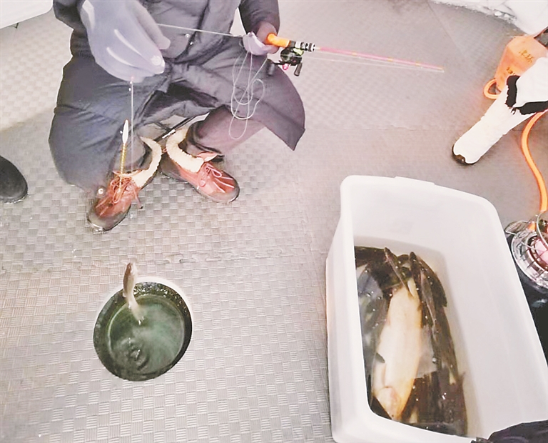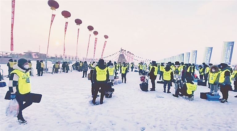 生活报讯 (记者孟薇薇文/摄) 27日上午,“2022黑龙江冷水鱼·冬捕季”系列活动在哈尔滨太阳岛、牡丹江镜泊湖、呼兰大顶子山、抚远、七台河等地同步开幕。9点30分,随着该系列活动之一“2022全国冬钓大赛”开赛鸣枪,来自全国各地的400名冬钓爱好者有序来到钓位进行比赛,在经过4个小时的激烈角逐后收杆完赛。参赛选手王春军、苏峰,以总重量34斤的成绩获得比赛冠军,收获奖金6万元。