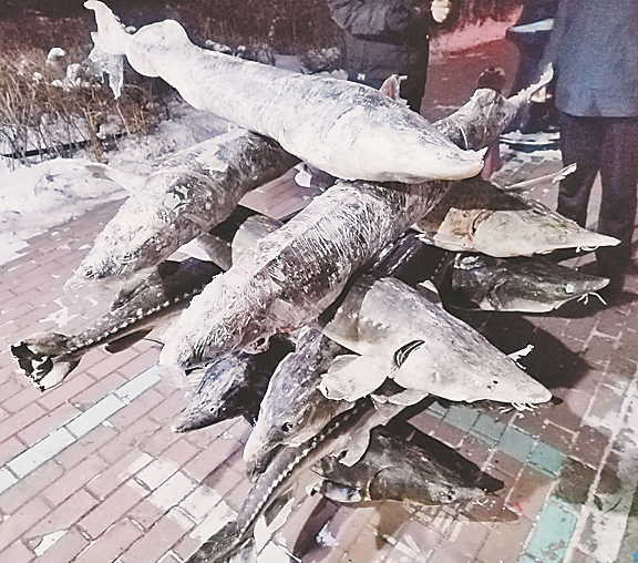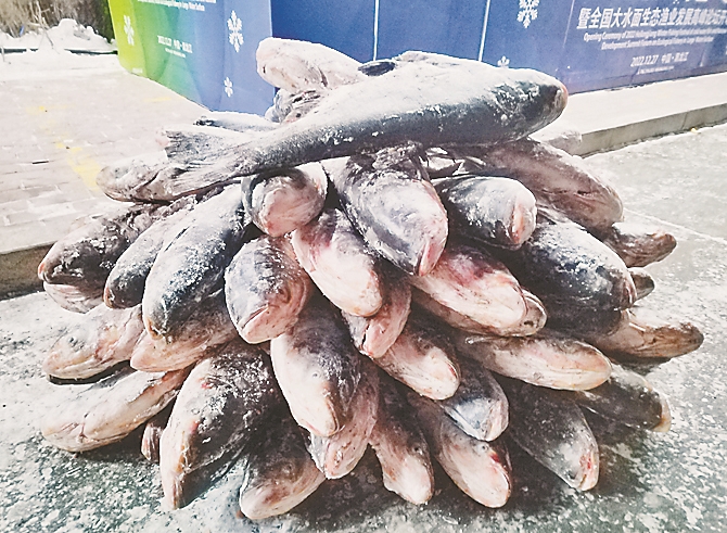 生活报讯 (记者孟薇薇文/摄) 27日,“2022黑龙江冷水鱼·冬捕季”系列活动在哈尔滨太阳岛、松北龙江第一村、呼兰大顶子山、牡丹江镜泊湖、七台河、抚远等地同期开幕,一时间龙江大地沸腾起来,鱼跃人欢热闹非常。开在哈尔滨松北区龙江第一村的“鱼市节”,不仅售卖纯天然绿色龙江冷水鱼和预制菜,龙江鱼馆还备有大铁锅现场炖鳇鱼和鱼汤,27日起供市民免费品尝三天。