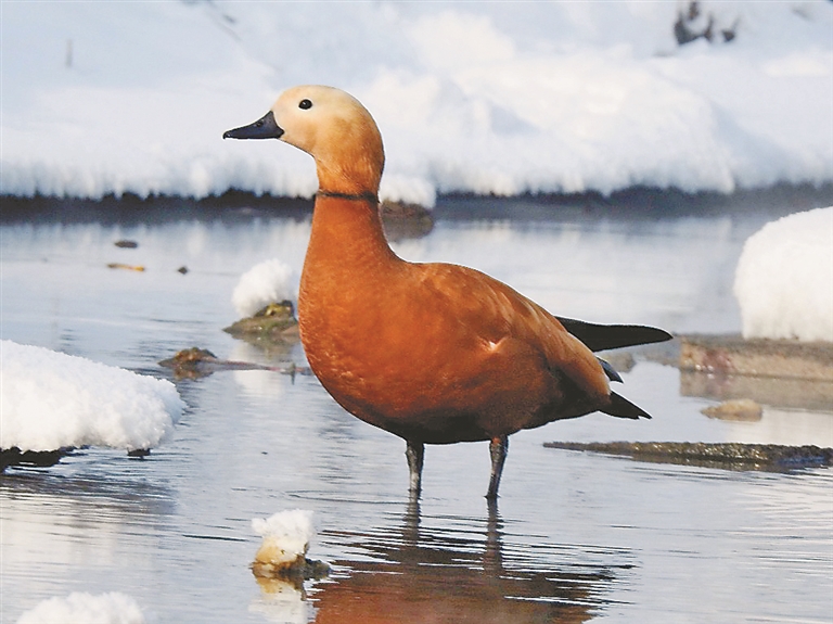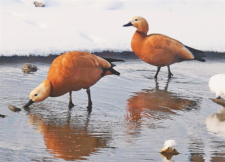 随后,记者向相关鸟类保护专家咨询,这是赤麻鸭,虽然是候鸟,但每年也有少部分没有迁徙。一般它们会找没有封冻的自然江河水面,这里出现赤麻鸭长时间留守现象,说明周围自然环境比较好,对它们觅食和生活有一定帮助。