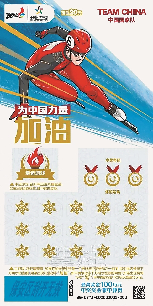 以体彩顶呱刮为例,北京冬奥会期间,体彩特别推出了“为中国力量加油 冰雪”即开票,让广大购彩者可以通过购彩方式,参与到这场全球瞩目的冰雪盛宴中,在为中国力量加油的同时,也可以收获更多的惊喜与好运。