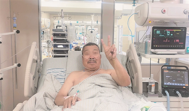 生活报讯 (记者周琳) “我高兴啊!感谢所有医护人员全力以赴地救我!”2日,躺在病床上的张大爷表示。经过4天的救治,张大爷终于战胜了重度肺炎,很快将出院。