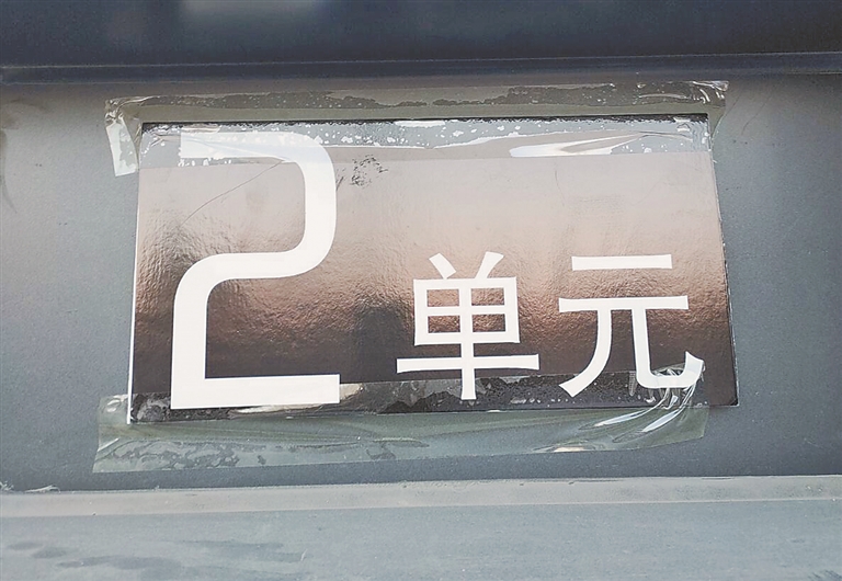记者走访 单元门门牌用胶带粘 步道板有破损