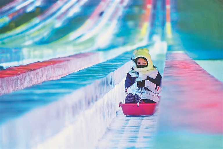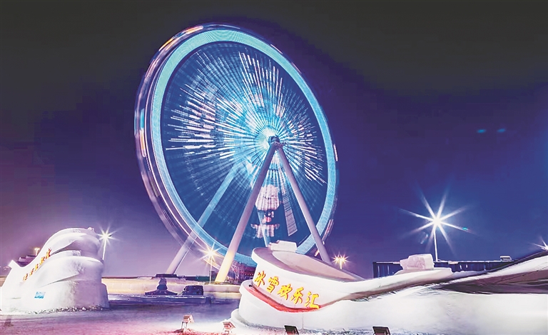 120米的“哈尔滨新地标”雪花摩天轮和500米长的超级大滑梯,都是游客们热衷打卡的“网红项目”。“坐在雪花摩天轮的轿厢里,冰雪大世界和松花江两岸的城市风光尽收眼底。整个园区仿佛是一个美丽的丁香花环,非常具有视觉艺术效果。”一位游客赞叹道。而500米的大滑梯,带给游客的则是超爽、刺激的快乐体验。“无法用语言来形容,只有体验过才知道多好玩!”一对儿深圳游客说。