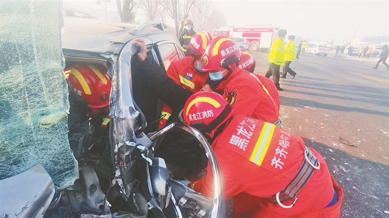 生活报讯 (记者肖劲彪) 7日9时43分,齐齐哈尔市梅里斯区大八旗村路段一辆SUV车不慎撞树,驾驶员被困车内,事故造成3人受伤。