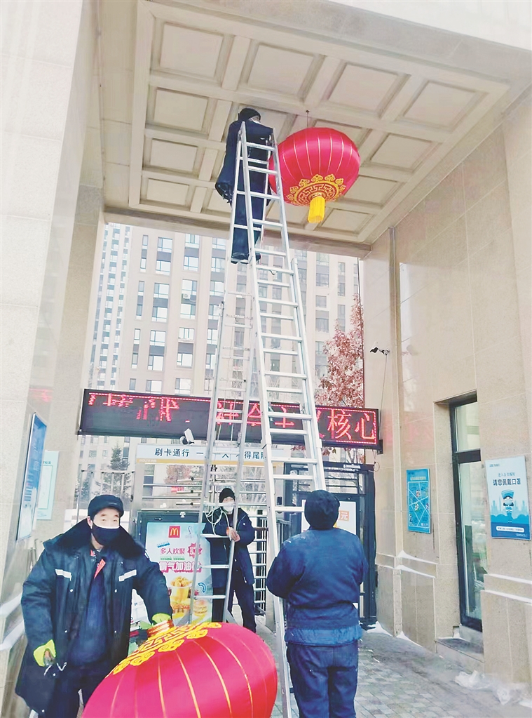 记者在采访中了解到,目前菱建、新东方、和信行、中海、高地、品阁、华瑞等物业企业服务的小区纷纷开展灯饰装饰、冰雪雕塑等工作,同时开展线下自制糖葫芦、线上灯谜竞猜等活动,进一步提升了小区烟火气和年味。