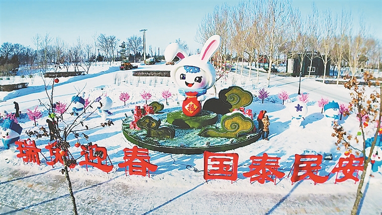 为努力打造独具道里韵味的文化赋能城市名片,道里区城管局在音乐公园打造大型雪雕景观“雪妮妮”。道里区城管局相关负责人介绍,“雪妮妮”着重体现道里区悠久的历史与文化,也凸显哈尔滨作为国际大都市的文化内涵,更充分体现新春佳节的喜庆以及新年红红火火的寓意。