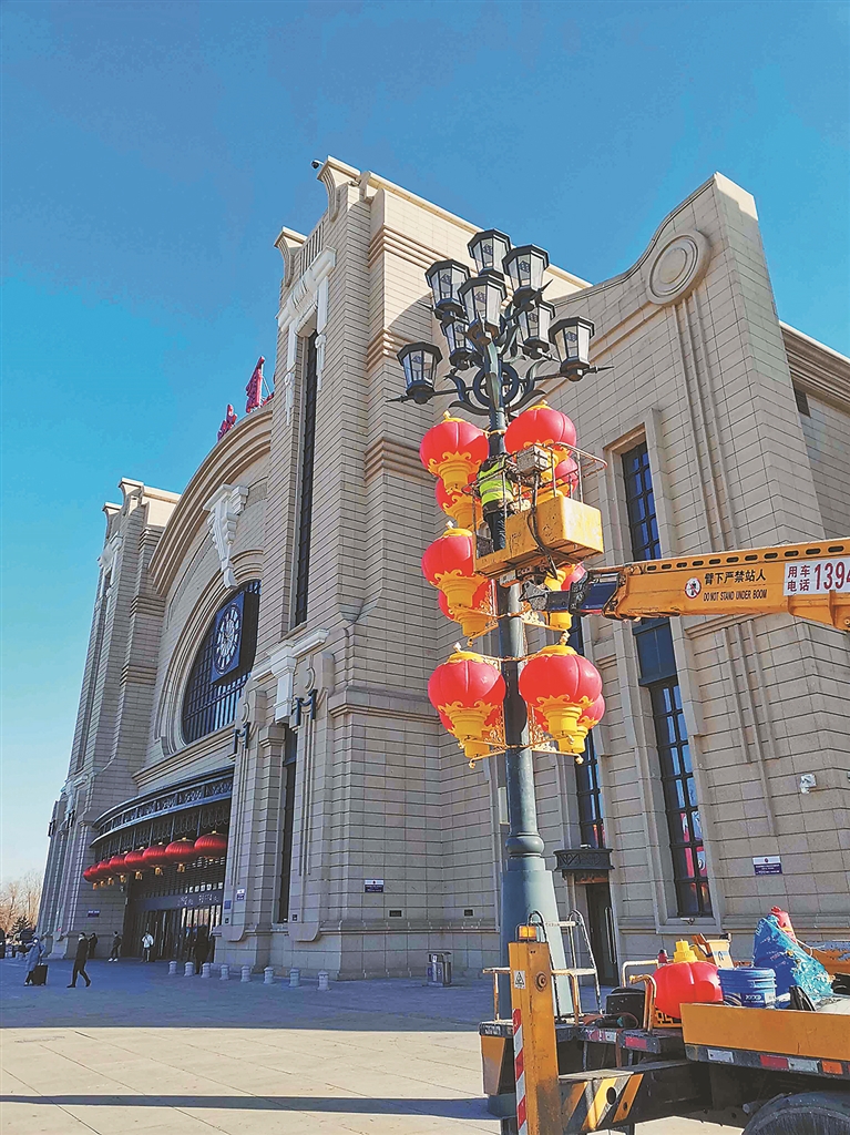生活报讯 (记者李丹) 近日,生活报记者从哈市城管局获悉,为给广大市民游客打造精彩亮丽的节日城市景观,哈市城管局统筹协调省市机关企事业单位和九区九县政府及城管部门,对已有节日装饰进行提档升级的同时,在全市增设节日装饰,预计主城区主要街路灯杆上设置3000对中国结,8000余对各式灯笼,20000串福袋、风车灯、流星雨灯等树木彩灯,各类灯箱1000对,绿篱射灯2000个;对公园内的入口及桥体、树木、围栏等进行彩化亮化,在出入城口设置“欢迎回家”节日彩灯,在车站商圈对迎标语安装亮化灯饰和大型兔年吉祥物等立体装饰景观,在景点布设烘托节日氛围的兔年吉祥物。以上装饰营造工作将于19日前全部完成。