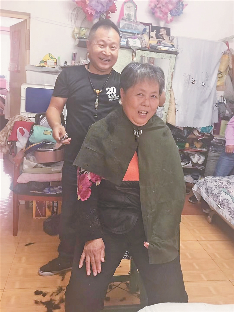 从此以后,吴文宝开始了义务理发。他主动去各个社区街道,询问是否有残疾人、低保户或者退伍老兵需要理发,他可以提供上门服务。看着走路一瘸一拐的吴文宝,很多人都担心地问他:“你的腿上门方便吗?”这时候,吴文宝都会笑着说:“肯定比需要上门的人方便。”