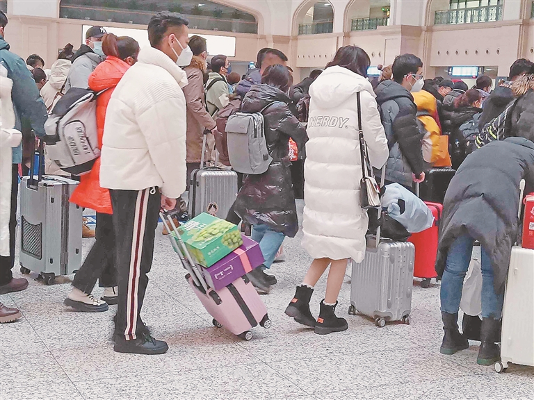 “孩子今年都三岁了,没去过姥姥姥爷家,这次回来过年就是要给家人一个惊喜。”在候车室,记者见到了从广州回来的张小峰一家,他们带着大包小裹。张小峰说,今年他们早早就买了礼物,打算一起回到虎林市过个大年,老人们可高兴了。“我是吉林人,妻子是虎林的,她已经三年没有回娘家了。这次坐飞机、坐高铁,还要转乘汽车才能到岳母家,但再辛苦也要回去过个团圆年,这是老人的心愿。”张小峰说。