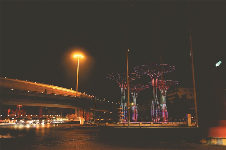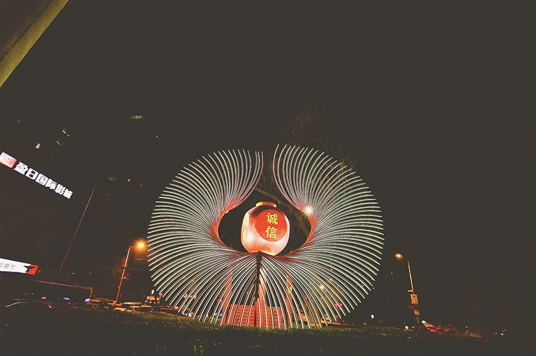 生活报讯 (记者李丹) 绿化带犹如彩虹飞舞、大红中国结高高悬挂、路旁楼体彩光环绕……近日,哈市香坊区的夜晚彩灯争艳,浓浓的年味充满大街小巷。