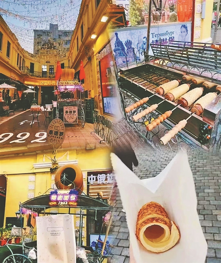 万国洋行地面铺设醒目的“1922万国大道”,结合冬季氛围,打造了飘雪的万国洋行。此外,中央大街融入各国特色业态,引进的捷克泰德罗面包,凭借现场烤制的独特卖点日销千余个,备受欢迎的还有荷兰的安娜芝士、慕尼黑的烤肠。