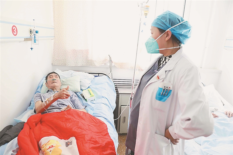大年初二,侯佳岐值班。早上,她先去看的患者是76岁的霍大爷,霍大爷看见侯医生来了,会立刻竖起大拇指,住院这半个月来,这已经成为他们之间的“暗号”。“今天怎么样啊?要回家了,身体再有不舒服随时过来。”侯佳岐嘱咐霍大爷。