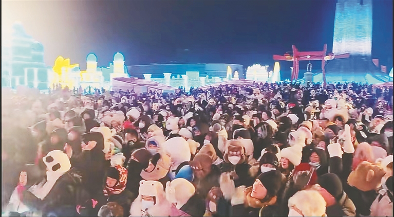 哈尔滨冰雪大世界里“人山人海”