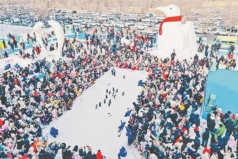 春节期间,哈尔滨极地公园的“淘学企鹅”也火出了圈,吸引了一批粉丝前来围观。“萌哒哒的小企鹅,在冰天雪地里‘漫步’,太可爱啦!”“我女儿最喜欢‘淘学企鹅’啦,听说春节期间它在景区广场免费巡游,我们立刻坐着地铁来观看了。”“春节期间,我还在冰雪大世界看到了‘淘学企鹅’的身影,‘网红’打卡冰城‘地标’,太有创意啦!”围观的游客们纷纷说道。据了解,赏冰雕、看雪雕、寻“淘学企鹅”,已经成为这个春节假期哈尔滨游客的热选“旅游线路”。