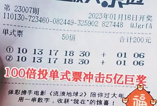 每一期开奖之前,网络上都会有很多精美的晒票提前亮相,但是到了最后基本上很难看见有收获好运的。不过有的时候也会有例外,来自重庆的彩友对同一组号码进行了100倍投注,欲中5亿巨奖,结果虽然失败了,但也确实中奖了。
