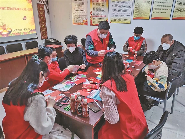 1日下午,南岗区大成街道中和社区青年志愿者在社区活动室开展了“创意灯笼送祝福·喜乐元宵人团圆”活动。志愿者和辖区内的小朋友们在社区活动室用新年红包的外壳制作元宵节灯笼。志愿者把做好的灯笼送给了小朋友们,并送上节日祝福,整个场面热闹、温馨、其乐融融。