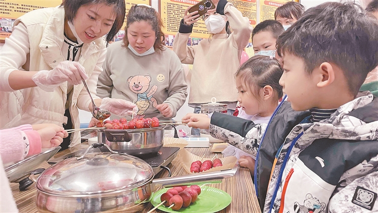 “妈妈,这个糖葫芦好甜啊!”在泰达社区新时代文明实践站,12个家庭一起体验汤圆的制作过程,充满童趣回忆。汤圆下锅,光大银行的志愿者带领孩子们利用红包、一次性筷子等废旧用品做灯笼,一个个老传统让孩子们有了新体验。