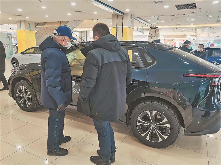 4日10时,2023“绿色启航” 香坊区首届新能源汽车、智能家电展在哈尔滨香坊万达广场启幕。不少“爱车一族”在现场看车型、了解性能及价格。现场九大车企的近20款汽车集中亮相,消费者可享受哈尔滨市政府最高5000元购车优惠补贴。