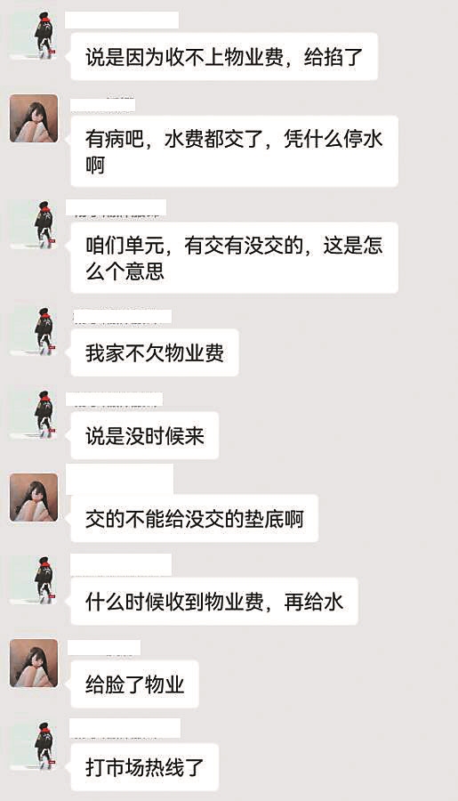 记者日前来到金色柏林小区进行采访。居民告诉记者,这次停水主要影响的是3号楼2单元的数十户居民,从3日晚开始,已经停水4天了,居民家没法做饭、没法上厕所,十分不便。记者向一楼物业保洁人员了解情况,其表示:“还停着呢,排水的管子断了,就在3号楼后面的地下,要修得把路面挖开。现在不停水,楼下就得返水。”记者看到,2单元一楼的电梯门上贴着一张通知,上面的内容是:2月3日16时起,3号楼2单元停水,因为外排管断裂导致下水无法排出,需要找外排公司维修。因3号楼2单元物业费陈欠较多,物业无力承担这笔费用,希望业主积极配合交费,尽早解决问题。
