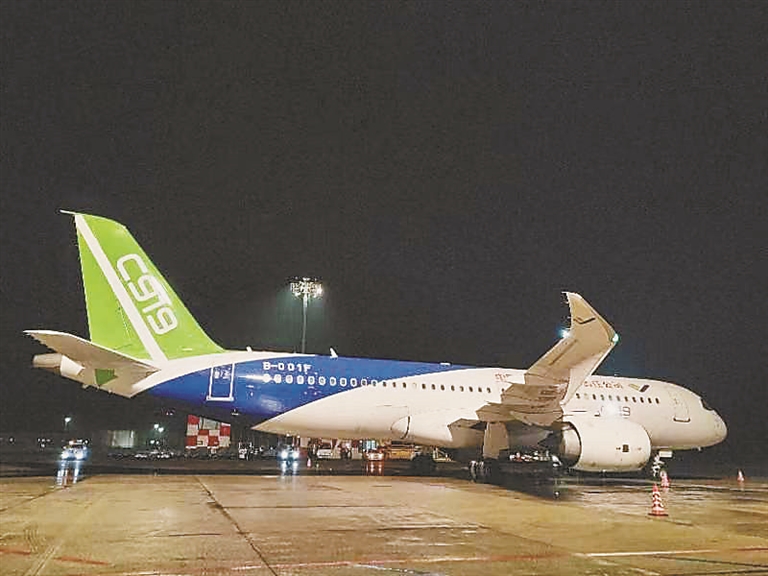 生活报8日讯 (仇建 温天禹 记者栾德谦) 经过近5个小时的飞行,8日18时05分,执行“上海浦东-三亚-哈尔滨”航线长航程运行能力验证试飞任务的国产大飞机C919平稳降落在哈尔滨太平国际机场,这是国产大飞机C919首次亮相哈尔滨机场。