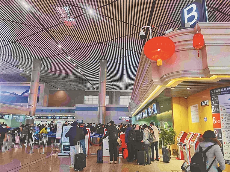 生活报讯 (记者栾德谦文/摄)近日,纷纷扬扬的雪花把哈尔滨装扮成银装素裹的世界,吸引全国各地越来越多的游客来到这里。火爆的龙江冰雪旅游,带动了哈尔滨机场客流快速增长。据统计,截至2月11日,春运36天以来,哈尔滨机场共保障航班起降15230架次,完成旅客吞吐量210万人次,分别恢复至2019年的98.4%、91%,分别高于全国平均值13.4和15个百分点。