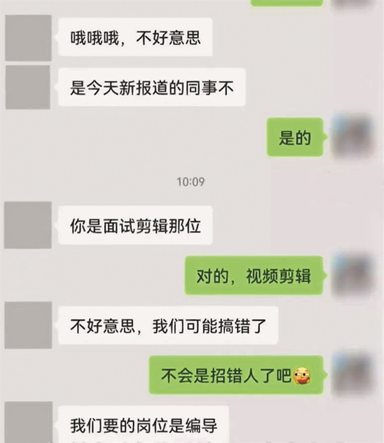 HR跟吴先生说,如果愿意留下来可以剪辑,但是工资肯定没之前的高。随后,HR让吴先生退了公司群。吴先生表示自己也很无奈,找了两个多月的工作,好不容易找到工作,公司还招错了。