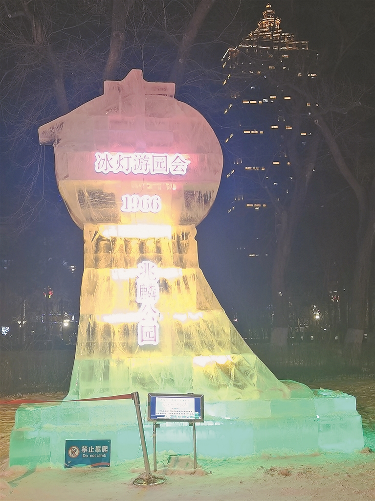 夜幕降临,第49届冰灯艺术游园会里人潮涌动。走进园区,很多游客都被一些“经典重现”作品吸引。与往届不同,今年“时光印记”在这里格外明显,12座“老冰雕”“老雪塑”回溯过往、今昔呼应,展现着哈尔滨的冰雪文化变迁。