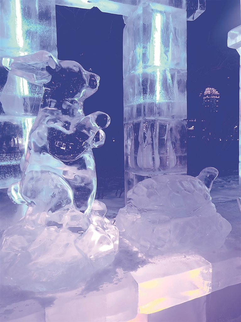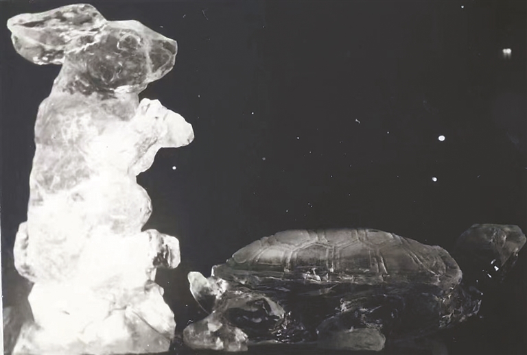 “快给拍个照,我跟这个1963年的‘老冰灯’同龄。”“太惊喜了,这个《龟兔赛跑》是我13岁时看到的,时隔41年竟然又在这里重现啦!”……游客们对于这个“景观设置”连连叫好。
