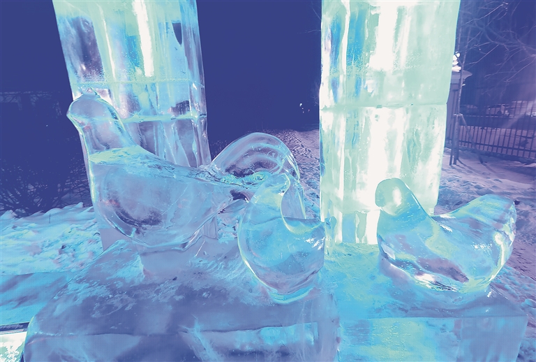 48岁郑金男,是除《冰花》外其他6组“老冰雕”再现作品的制作者,也是从冰灯艺术游园会各类比赛中成长起来的冰雪艺术从业者。“真的没想到竟然有机会用自己手中的刻刀再现半个世纪前的冰灯作品,这种感觉很奇妙。”郑金男说,作为土生土长的哈尔滨人,他是看着冰灯长大的,在制作这些“老冰雕”作品时也总能回忆起儿时跟着大人一起看冰灯的情景。“上个世纪八十年代,到哈尔滨兆麟公园看冰灯的人摩肩接踵,小小的我总是被眼前晶莹剔透的美景吸引。”郑金男还告诉记者,他从高中开始每年冬天都会在兆麟公园参加冰雕比赛,后来到哈尔滨市第二职业中学校工作、担任该校艺术专业部主任,每年会带着学生来参赛,可以说是亲眼见证、亲自参与、亲身体会了哈尔滨冰雪文化的变迁。