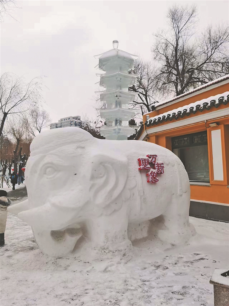 当然,“老冰雕”“老雪雕”再现不是“修旧如旧”,灯光的运用、塑造技术的变化等都在随着时代发展而变化。“以前老冰灯,是用灯泡、管灯等来亮化,而现在早已变成亮度更强、色彩更斑斓的LED光源了;还有《万象更新》,当年是用天然雪制作,需要把雪做成雪泥,像做雕塑一样一点点糊上去塑型,而现在利用造雪机人工造雪,制作成雪坯再雕刻,不但艺术效果好,作品看起来更白、抗融化效果也更持久。”郑金男和侯卫东这样介绍道。他们说,这都是60载冰雪文化发展道路上哈尔滨人智慧和创造精神的体现,也由此才能创造出一个又一个冰雪文化传奇。
