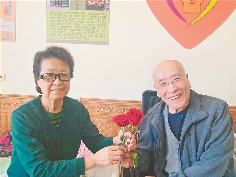 当天,80岁的栾金祥大爷和81岁的骆瑞坤大娘也“玩”起了浪漫,大爷给老伴送上了玫瑰花。据栾大爷讲,他们夫妇携手走过几十年的婚姻生活,从没吵过架、红过脸。“这份相濡以沫的爱情,是年轻人最好的榜样!”护理员小娟说。